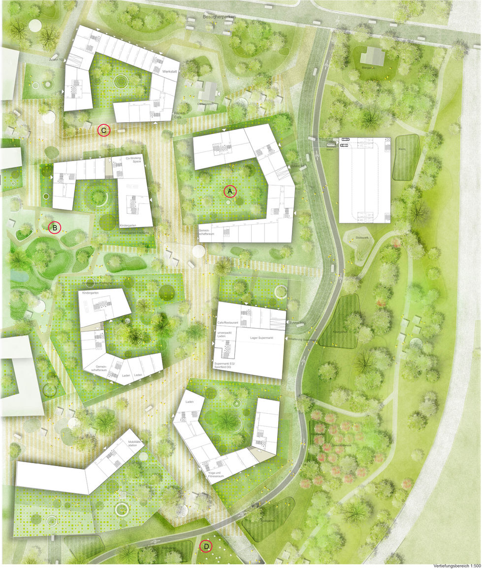 Projektaufgabe: Entwicklung eines neuen, nachhaltigen Wohnquartiers in gewachsener Freiraumstruktur