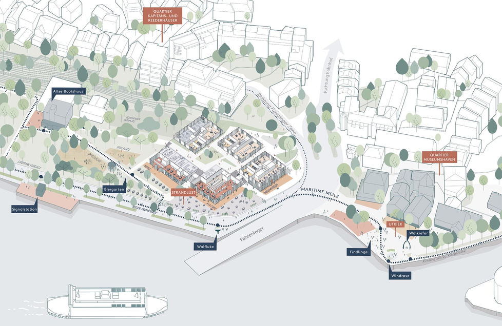 Aufgabe: Entwicklung des Areals "Neue Strandlust" mit Hotel, Gastronomie, Eventfläche und Außengastronomie. Das Areal soll wieder zu einem identitätsprägenden Ort werden.